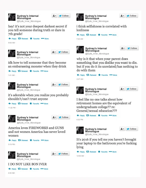 Sydney Morin is a writer and performer from Boston who recently graduated from Ithaca College with a BS in Television Scriptwriting. She's very into comedy, taboo subject matter and pop culture. Also, Sydney loves performing improv but she didn't tell you that initially because you probably have an iffy preconceived notion about improvisers. She's interested in the thin, creative line that blends humor with brutal honesty. She encourages you to think about yourself while you laugh at her. Sweatpants, hair tied, chillin' with no makeup on are a few of her favorite things. You can follow her on Twitter and Instagram: @sydmorin.