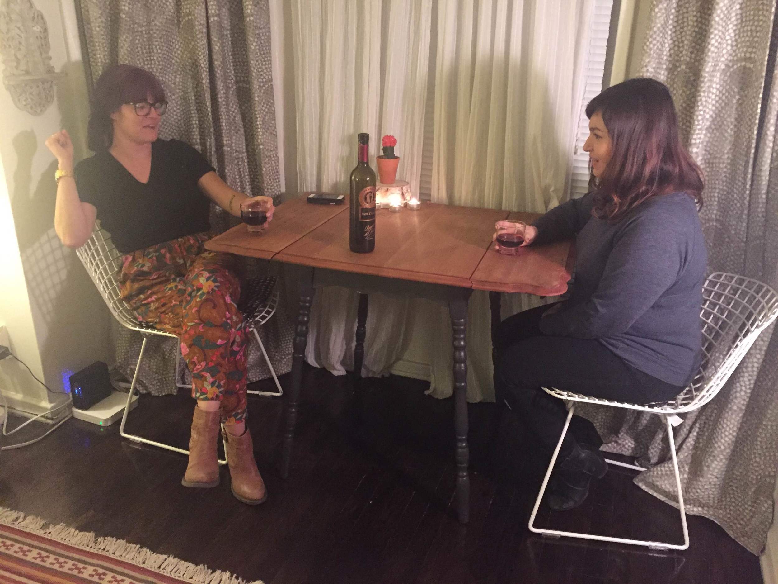 KN: oh, cute. [Kelsey pours Amelia more wine as Amelia giggles]